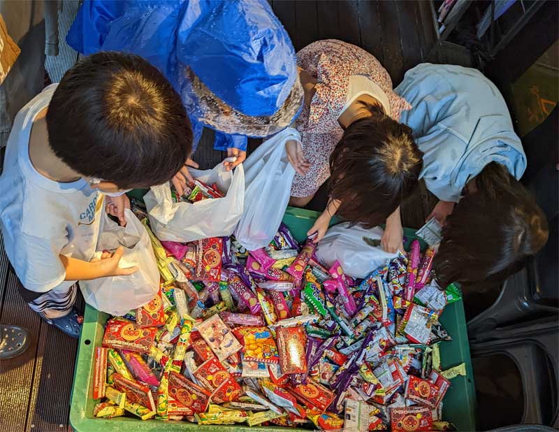 秋の祭礼 2022年9月20日 掲載 9月18日(日) 秋の祭礼・お菓子のつかみ取り コロナウィルス感染予防のためお神輿と山車の巡航は 中止 となりましたが、 子どもたちが楽しめるようにおこなった「お菓子のつかみ取り」には多くの参加がありました。